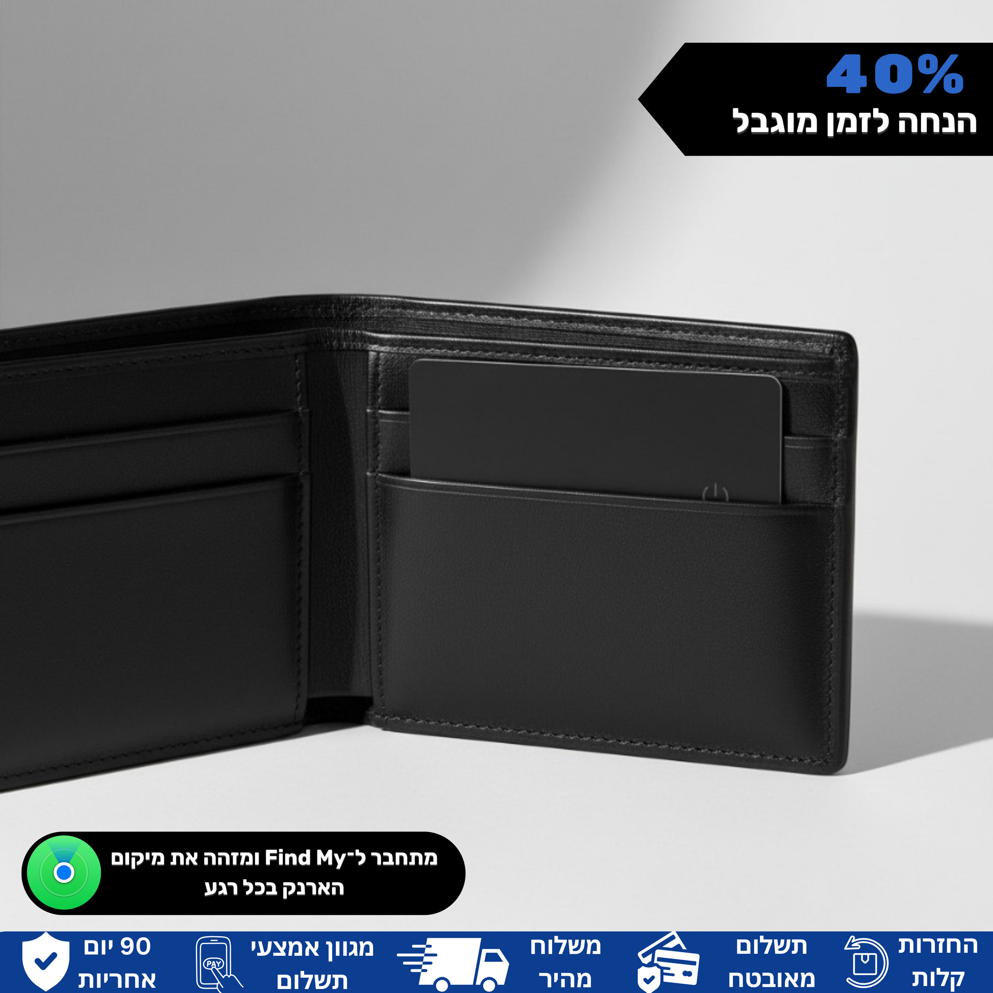 TRACKY הוא כרטיס דק במיוחד שמתחב לאפליקציית Find My של Apple. ברגע שתאבד את הארנק– תקבל מיקום חי, מרחק מדויק והתראה כשהוא יתרחק ממך.
